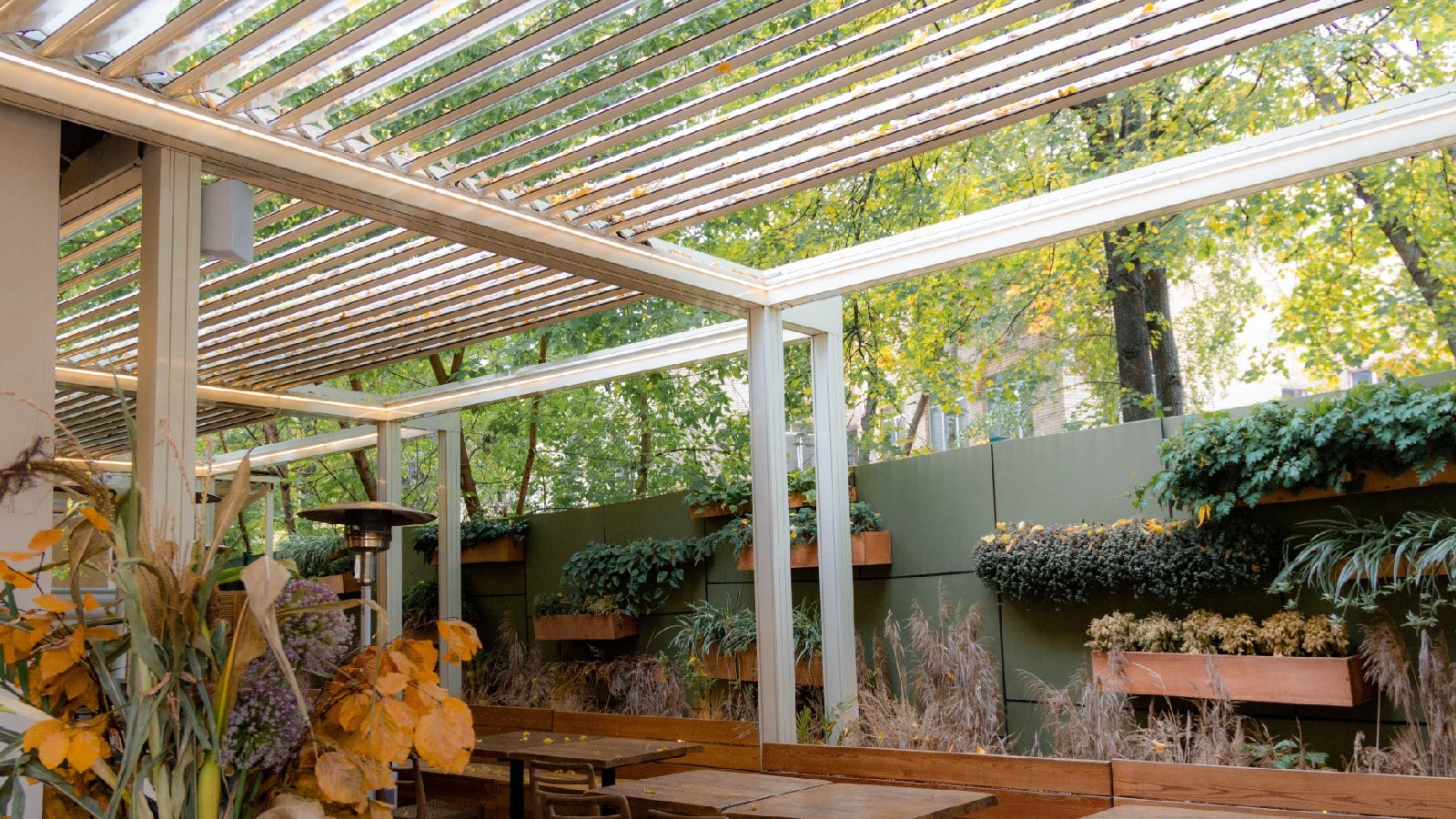 Биоклиматическая пергола с вертикальным раздвижным остеклением отлично подойдет как для частных домов, так и для ресторанов. Остекление раздвигается в разные стороны по рельсовым направляющим, что гарантирует плавность его хода. Может сдвигаться полностью или секциями. Опционально, модель может оснащаться встроенным замком, благодаря которому можно зафиксировать полное закрытие стекла.