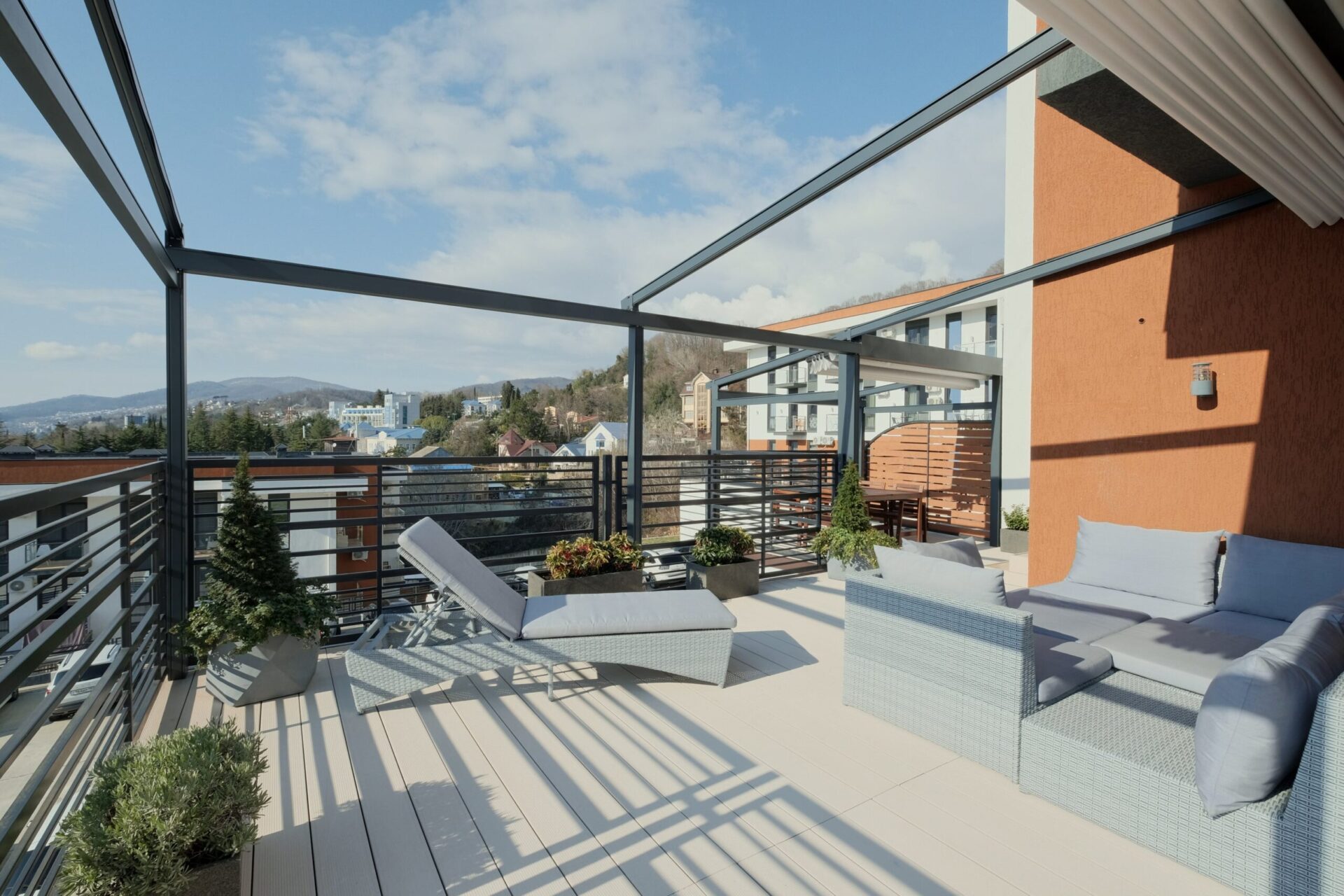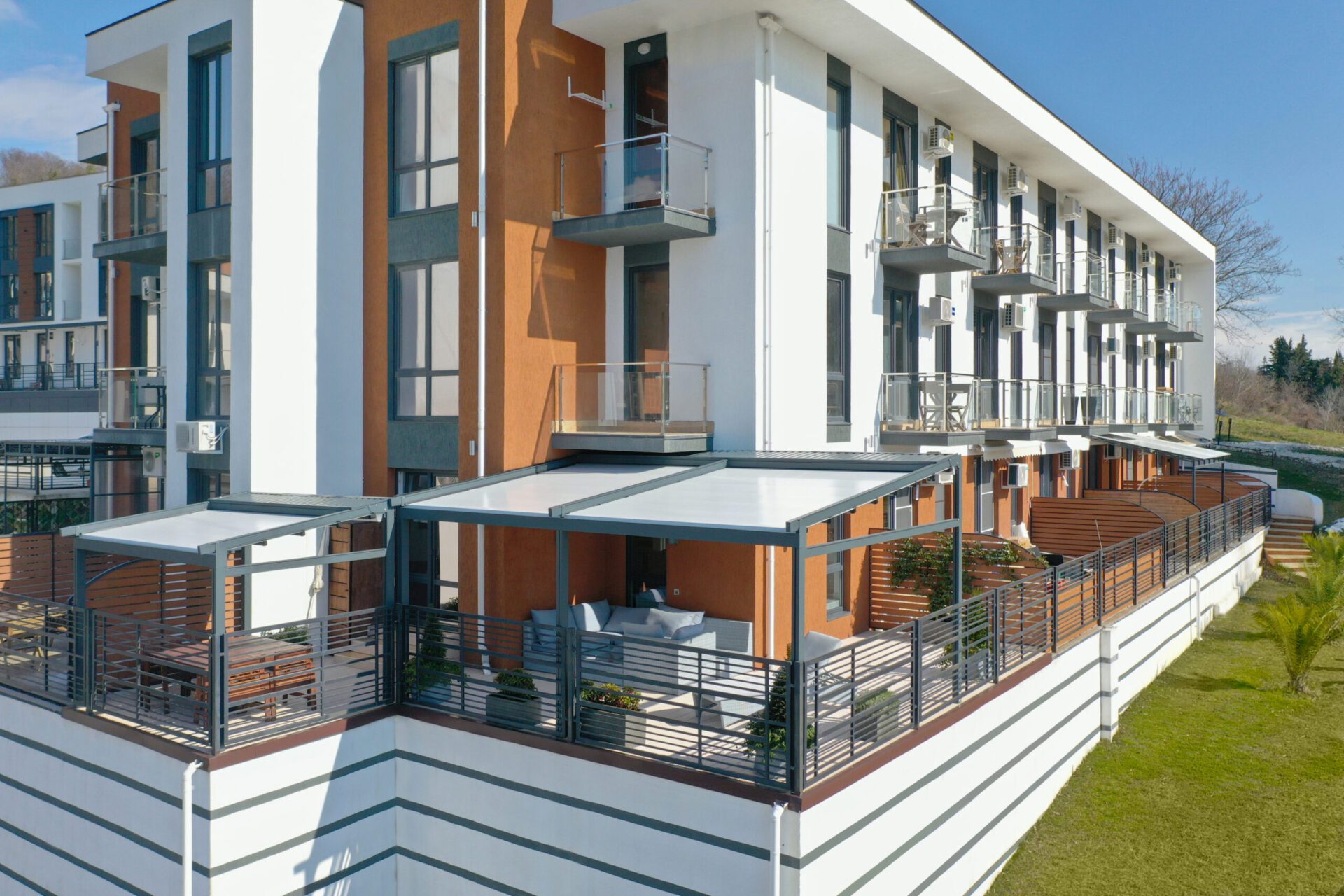 Система профилей CORPSUN проектируется в сериях изделий с одинаковым сечением профиля. Это обеспечивает единые линии конструкции с гармоничным и привлекательным видом. Конструктив изделий спроектирован с особым вниманием к эстетике, гармонии и симметрии, что придает изделиям CORPSUN идеальные пропорции, перголы с любого ракурса смотрятся привлекательно и изысканно. В конструктиве изделия отсутствуют выступающие элементы, искажающие архитектурные линии конструктива.
